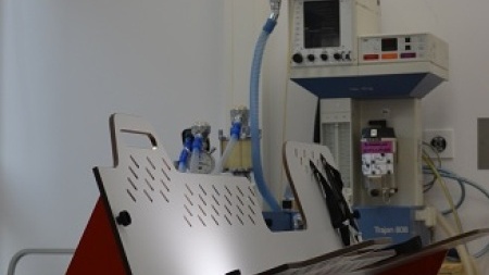 Dieser Raum ist für die Einleitung von Narkosen vorgesehen. Bei uns werden alle chirurgischen Patienten in diesem Raum in Narkose gelegt und direkt an ein Narkosegerät zur Inhalationsnarkose angeschlossen. Auf diese Weise wird sowohl das Narkoserisiko als auch der Stress für Ihr Tier deutlich reduziert. Auch wenn es für Sie den Nachteil hat, dass Sie bei der Narkoseeinleitung nicht dabei sein können - für den Patienten ist dieses Vorgehen von großem Vorteil. Der Raum ist nicht nur für die Einleitung von Narkosen ausgestattet, sondern auch mit einer umfangreichen Notfallausstattung. Ferner werden Patienten hier geschoren und gewaschen - also auch für die eigentliche Operation vorbereitet.